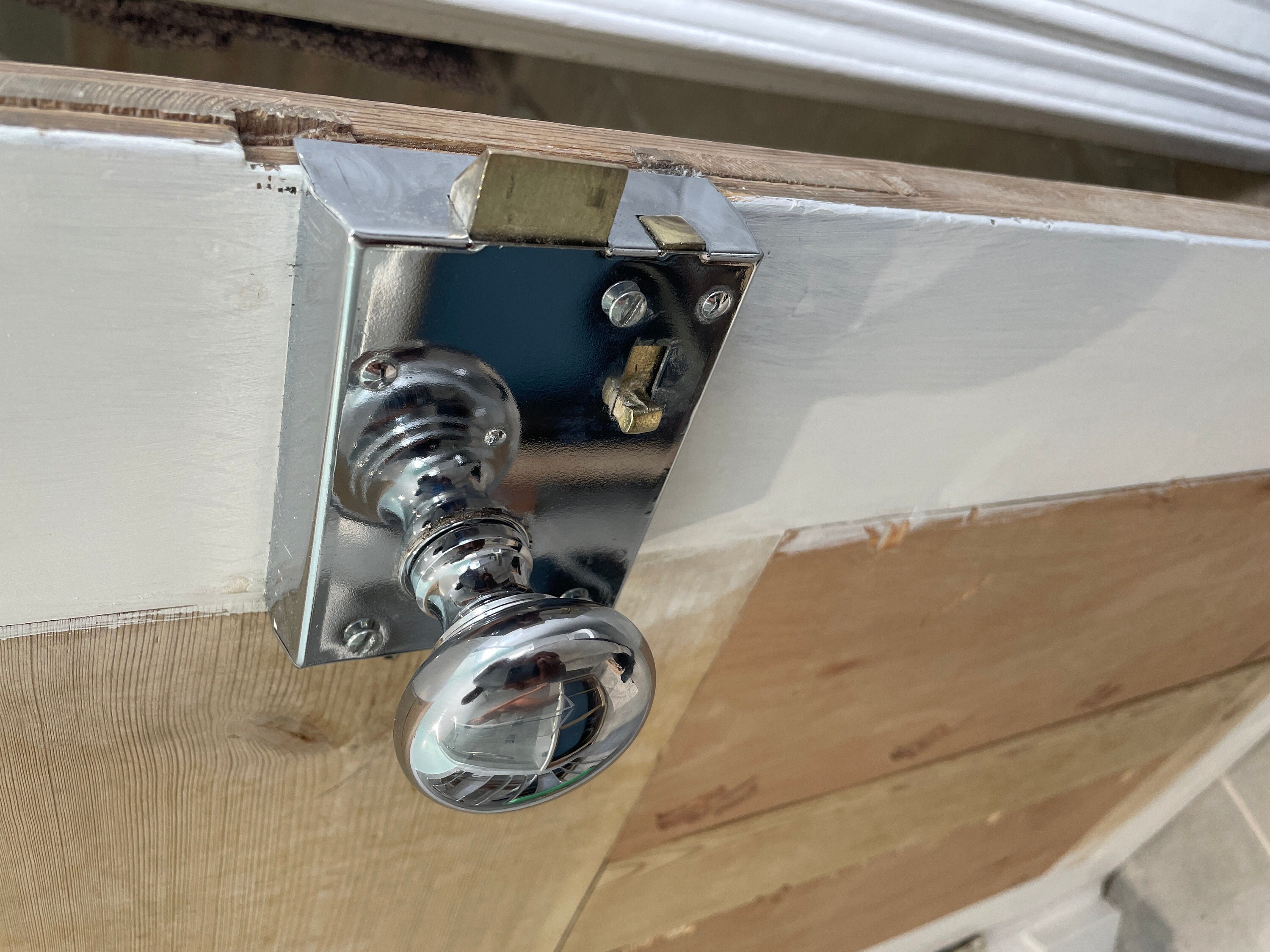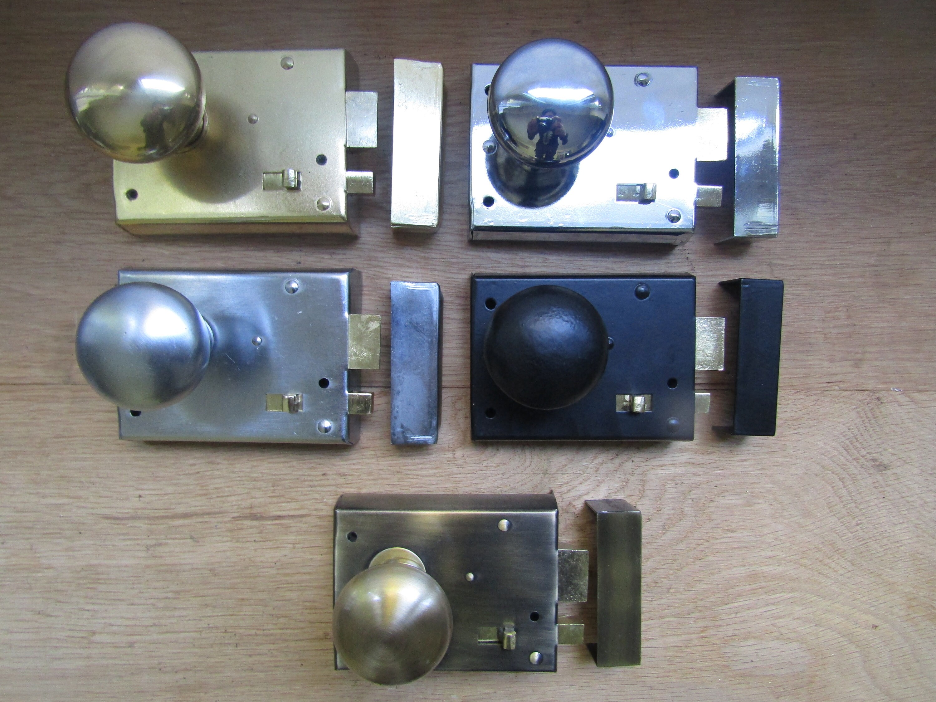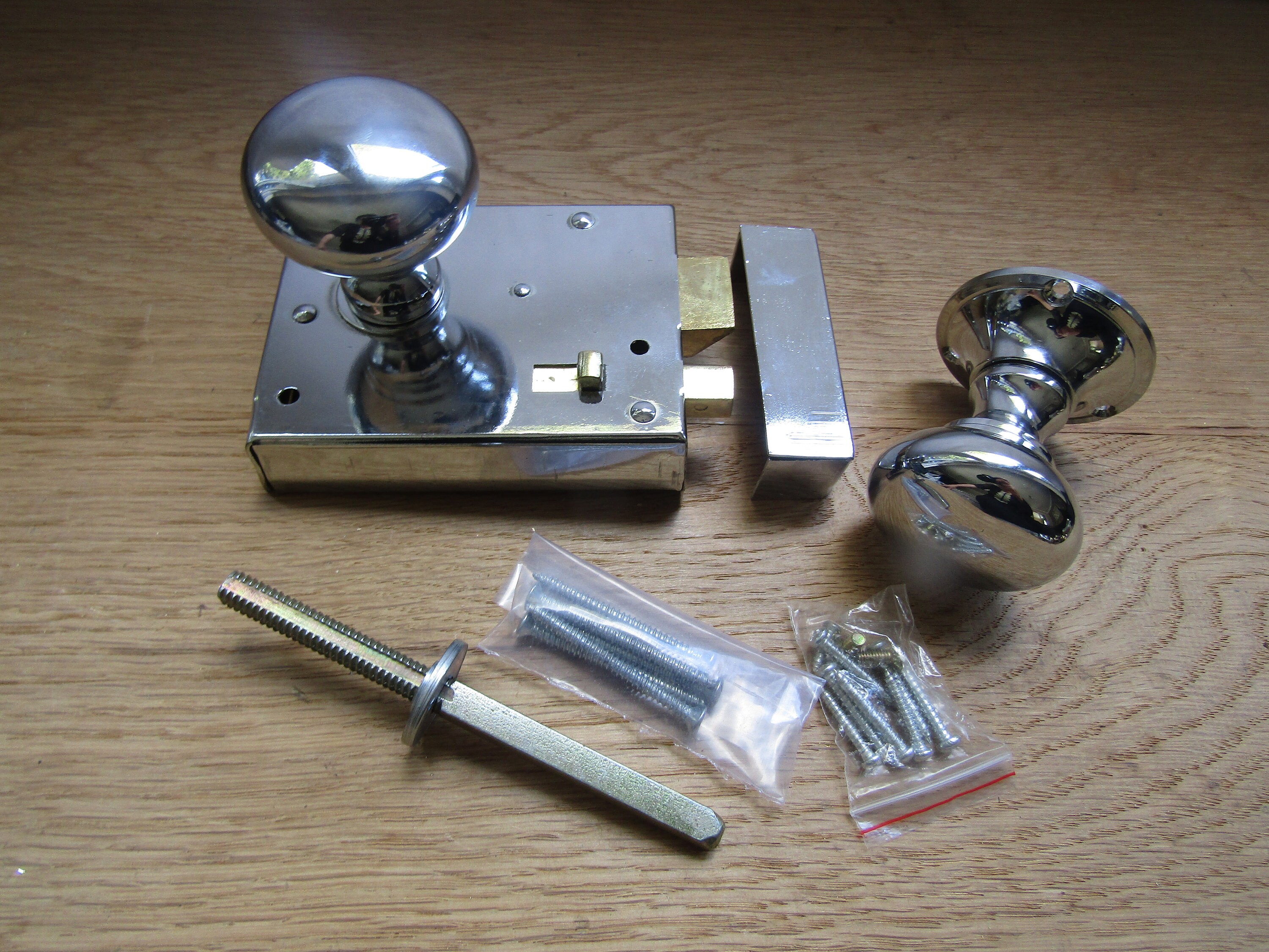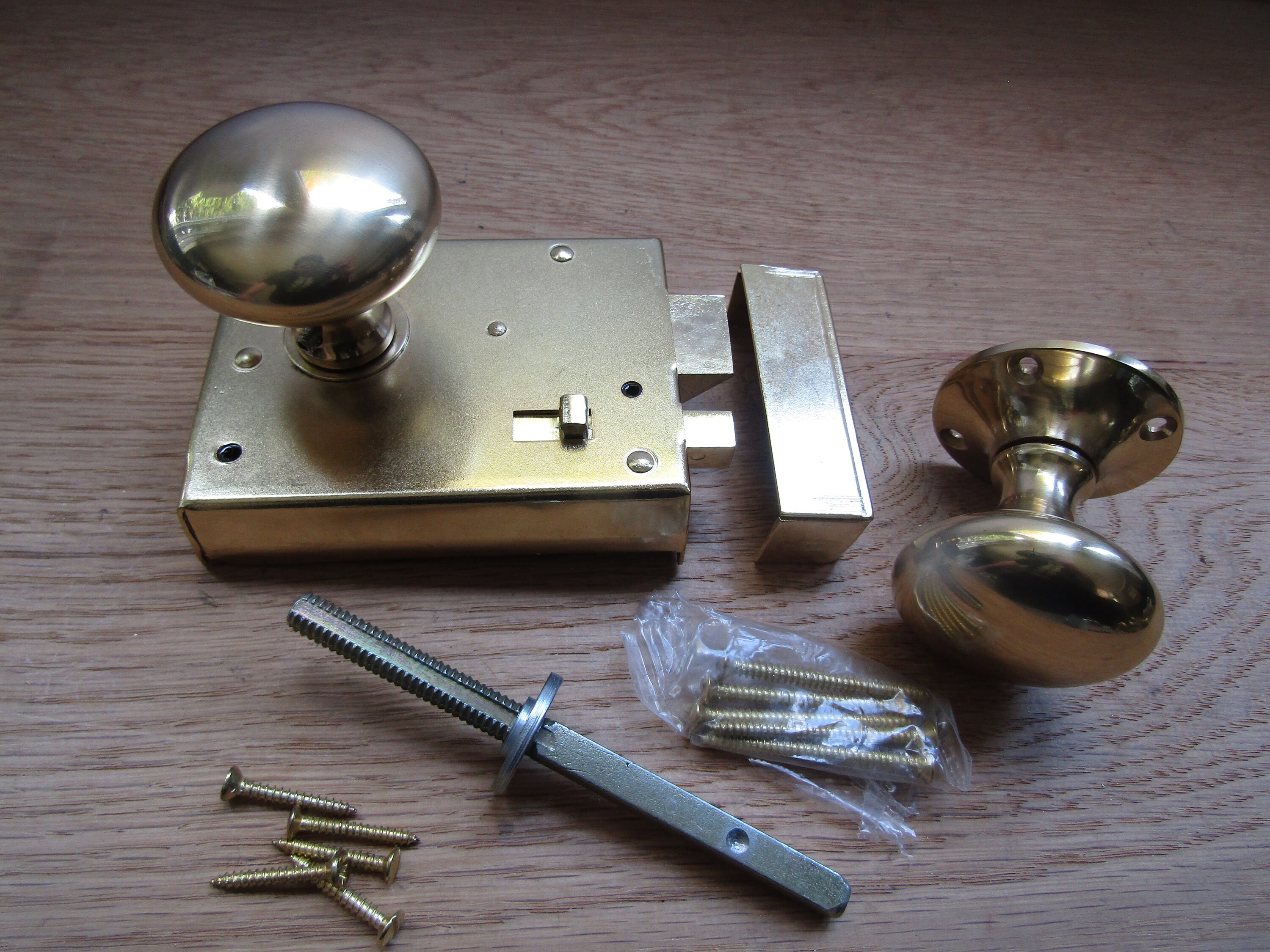 The door latch is cheap stamped steel and is riveted together so you can’t fix it when it broke. It broke the first week of install, trapping a guest in our bathroom. Have installed many rim latches (old and new) but this one is junk. The retractable bolt is weakly screwed to a stamped steel plate and the screws came out. Junk lock.