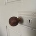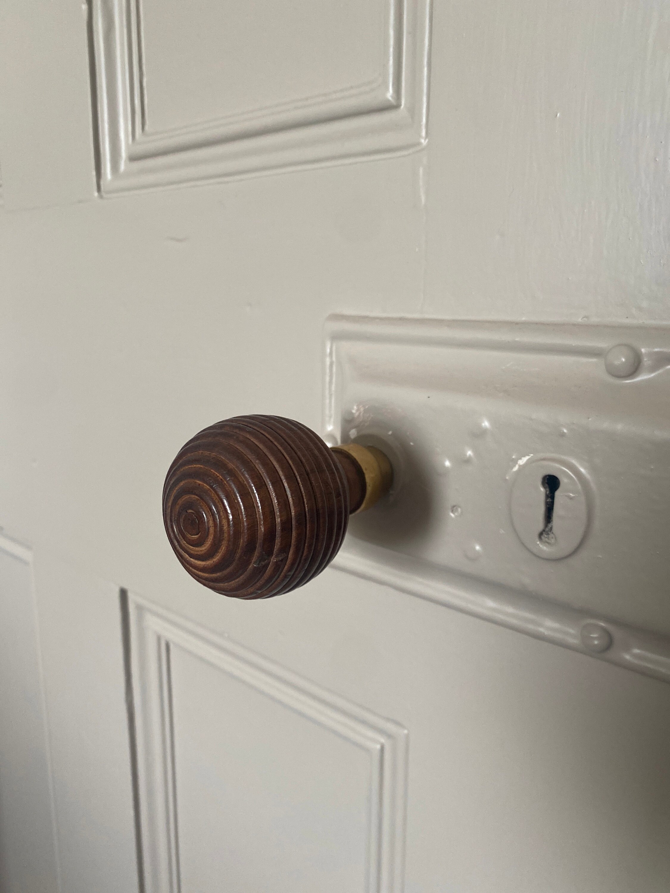 Wooden Classic & Beehive style mortice door knobs with brass collars and rose backplates