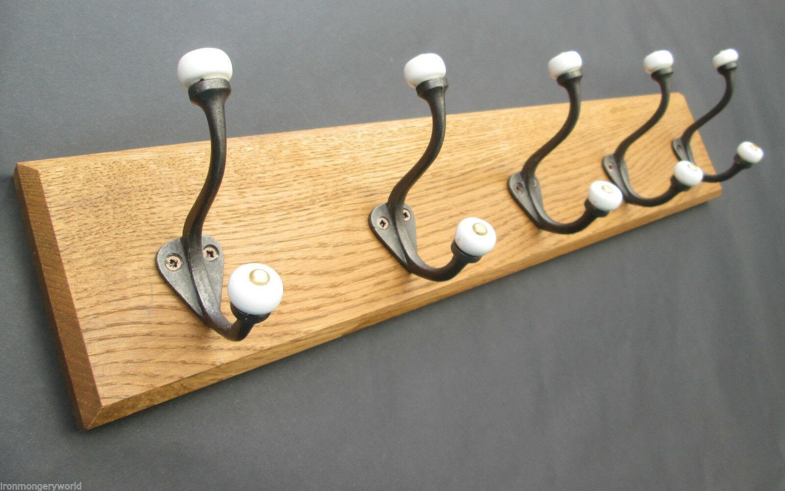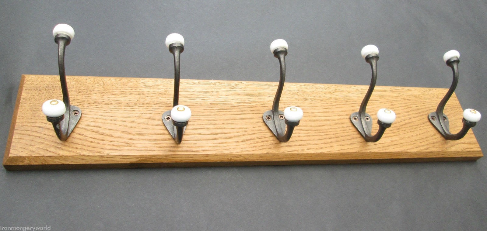 UK Handmade Solid Oak Wood Rustic Wooden Wall Mounted Hat and Coat Hook Rail Rack Hanger Coat Rail Antique iron Gloucester Cast iron hook