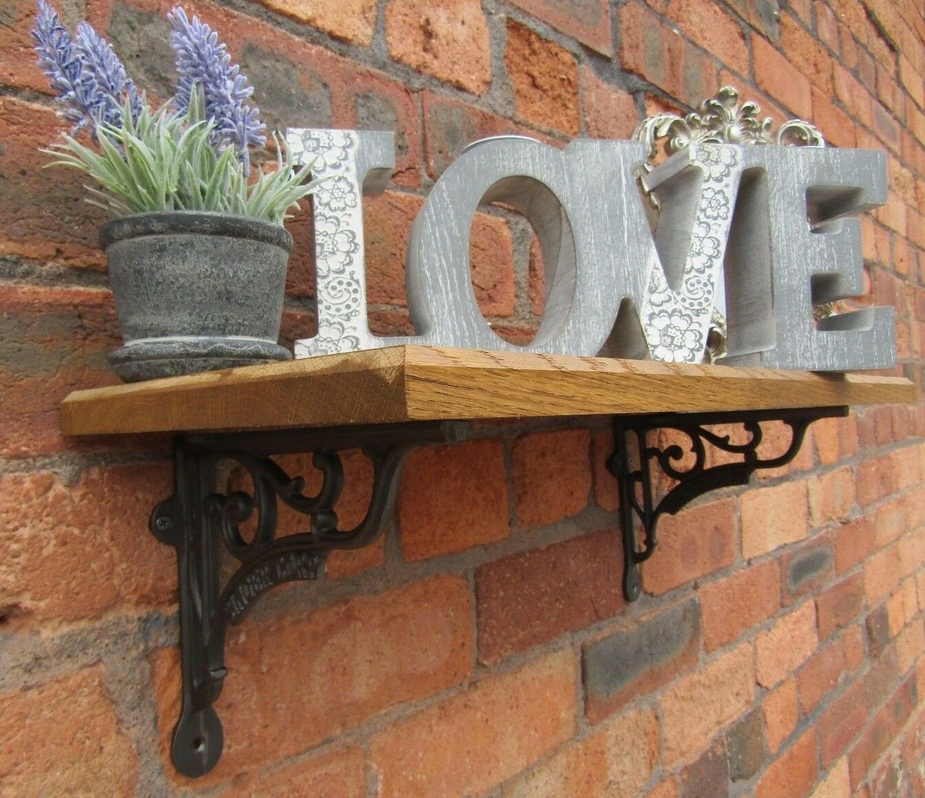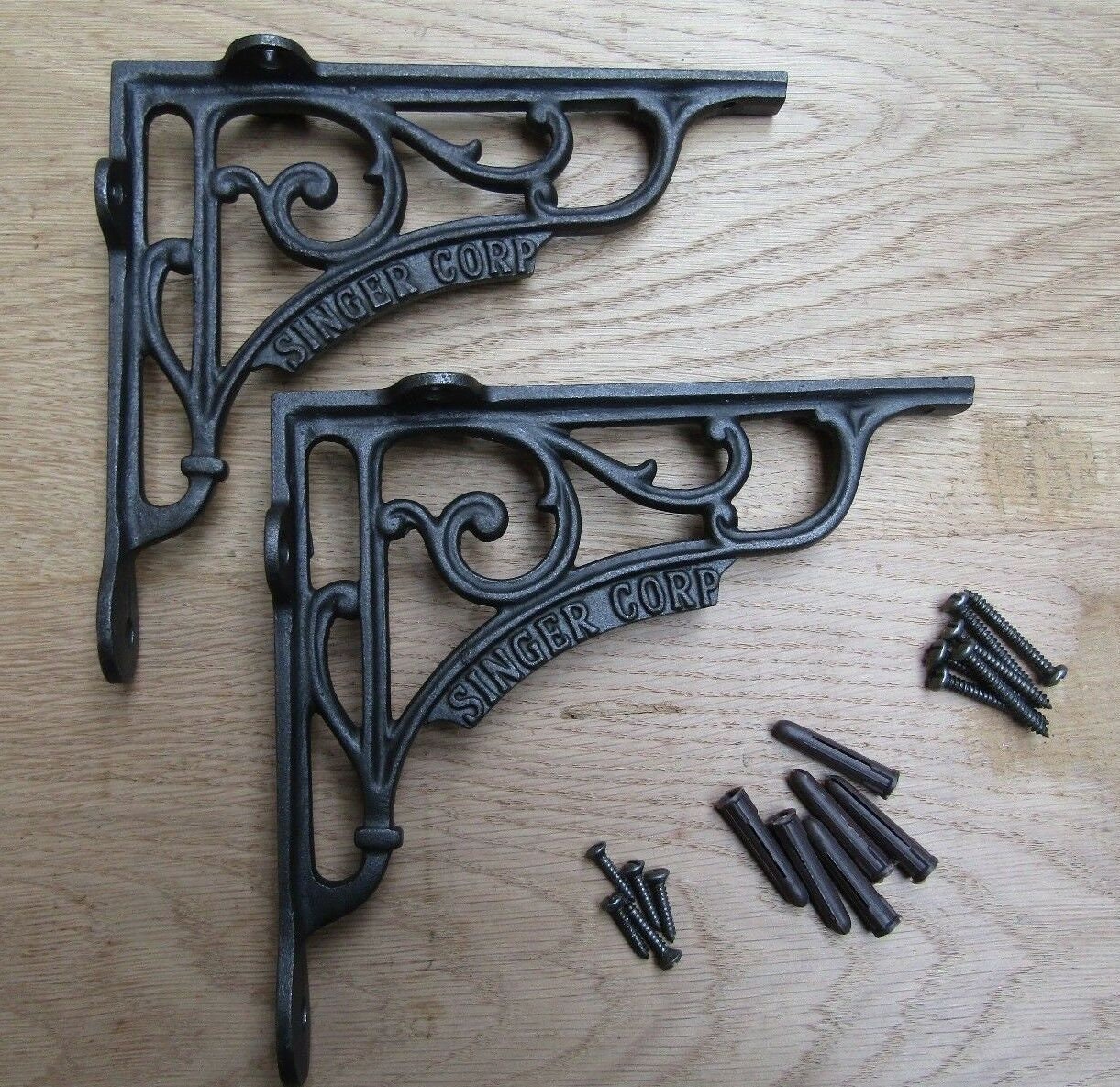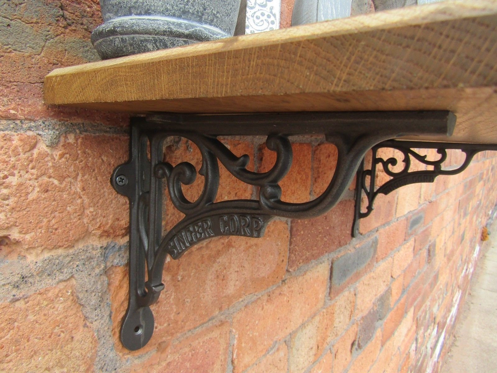 Solid Oak Wood Handmade Shelves rustic Shelf 22cm DEEP with cast iron shelf brackets 7" SINGER CORP antique iron