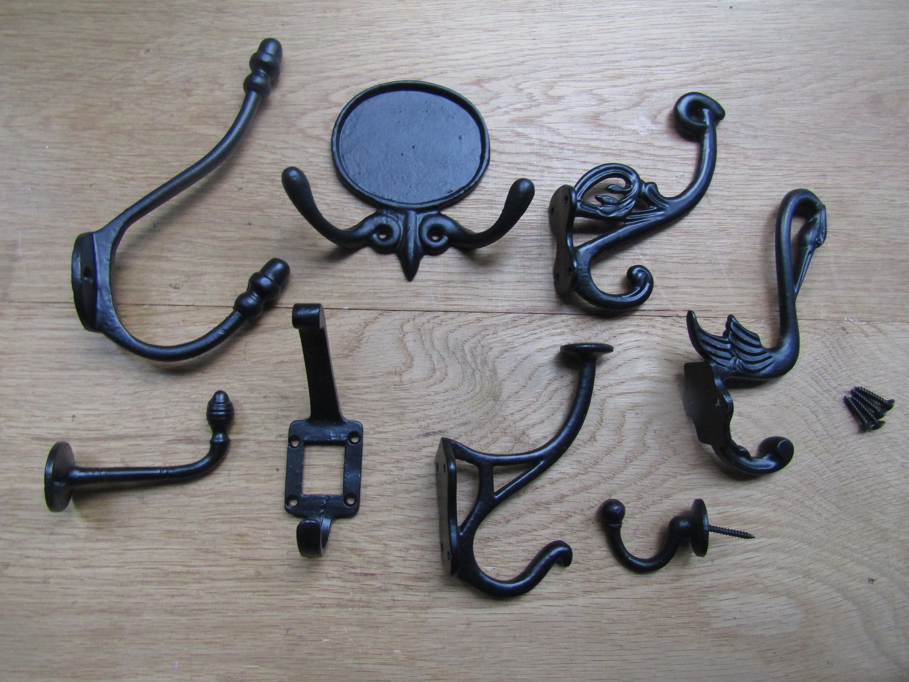 PACK of 5 Cast iron Black antique rustic vintage old hat and coat hooks retro shabby chic industrial pegs OVER 50 DESIGNS to choose from