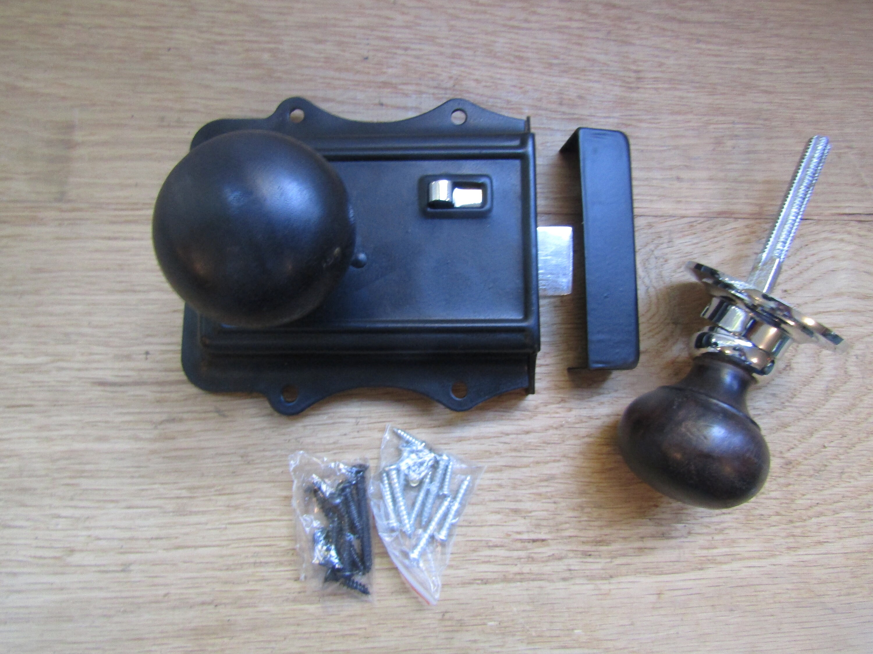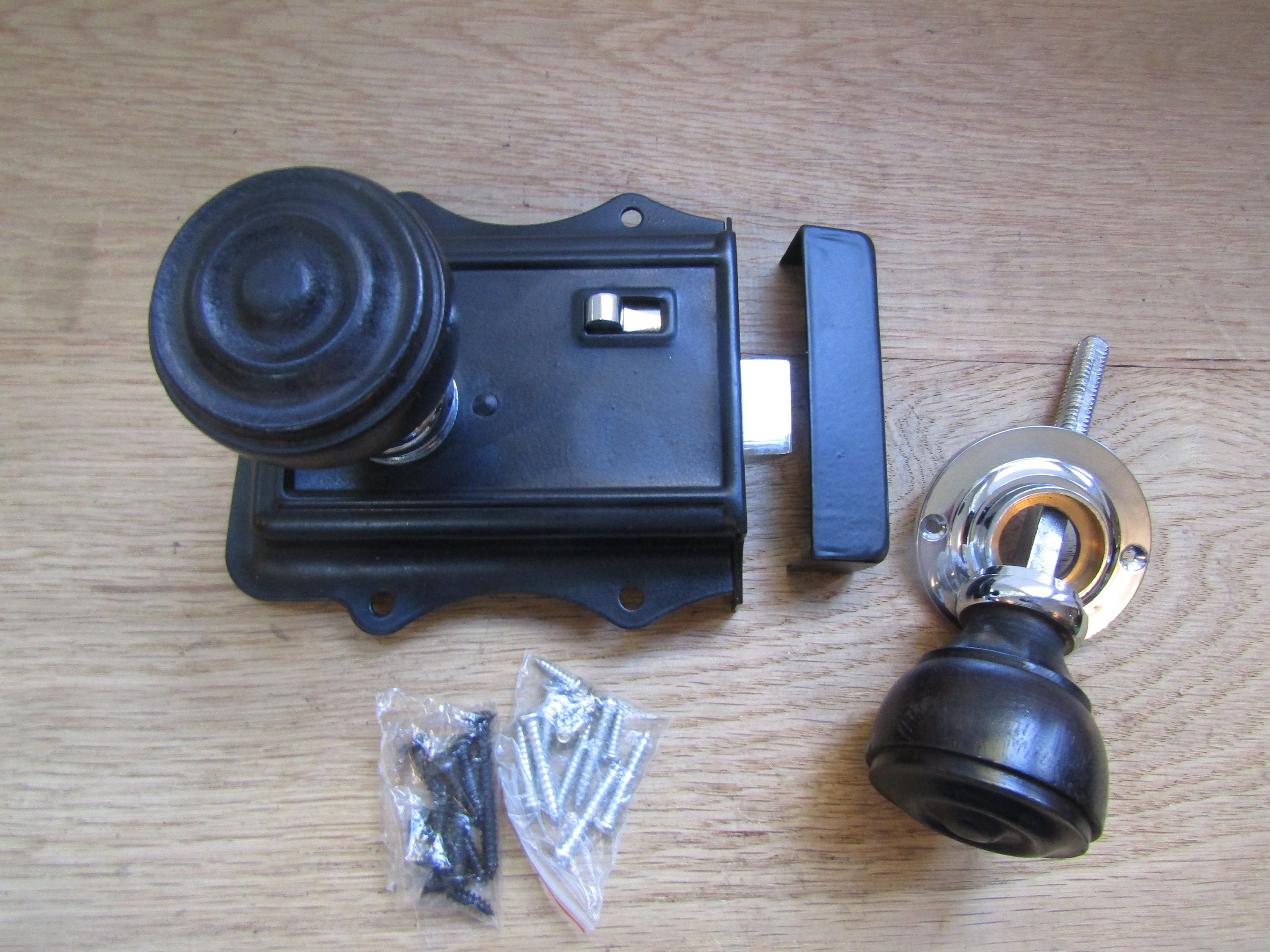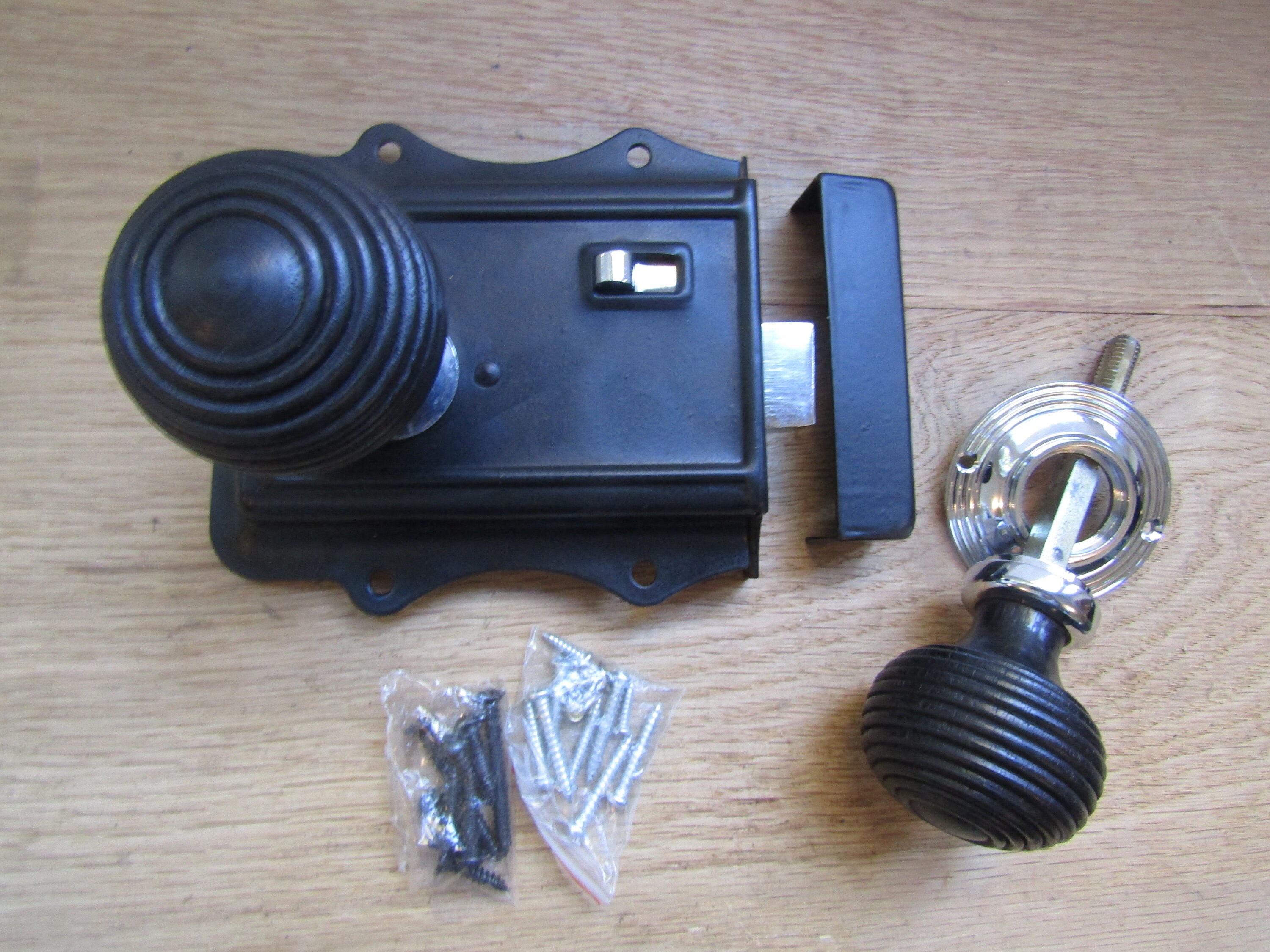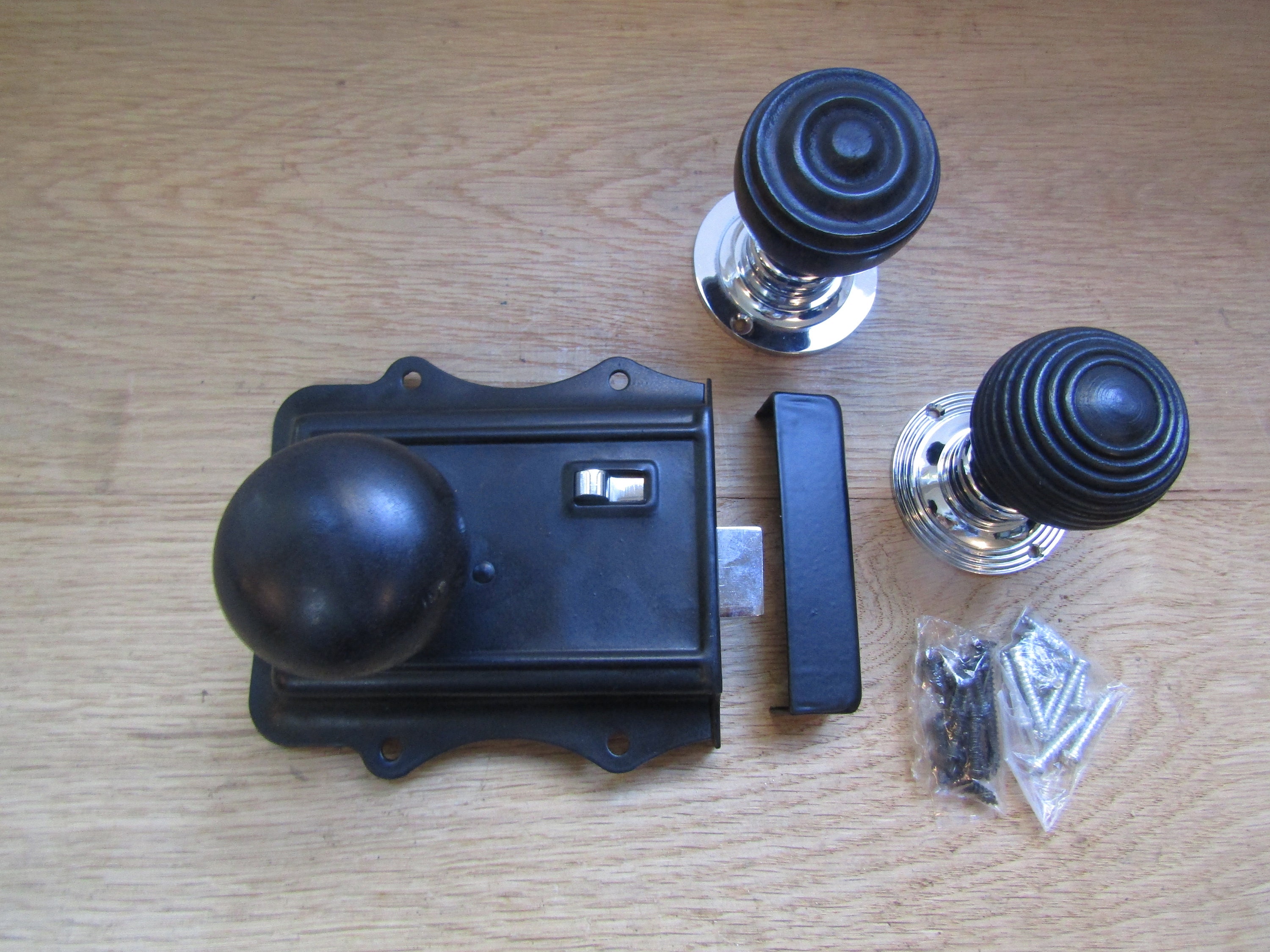 EBONY AND CHROME Rim knob & Olde rim latch set old rustic victorian retro style vintage door pull handles door knobs lock