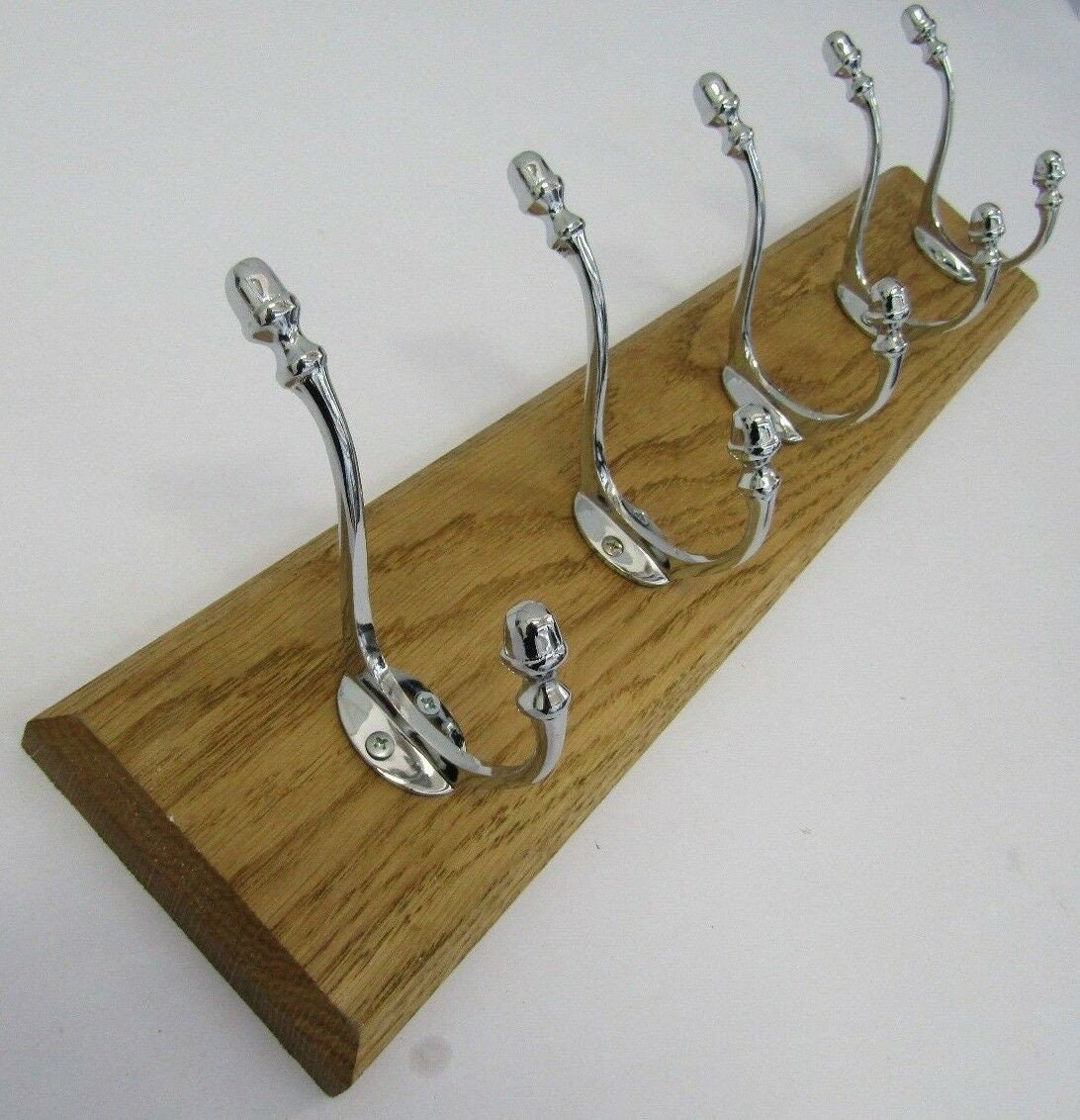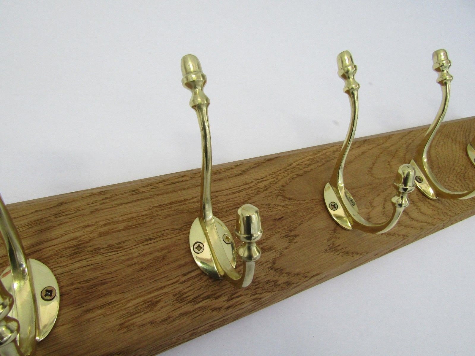 UK Handmade Solid Oak Wood Rustic Wooden Wall Mounted Hat and Coat Hook Rail Rack Hanger Coat Rail Solid brass Acorn hooks