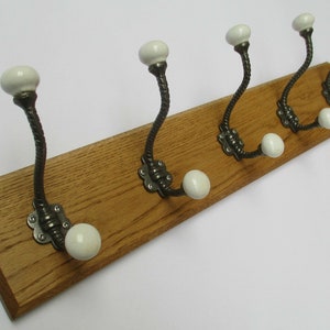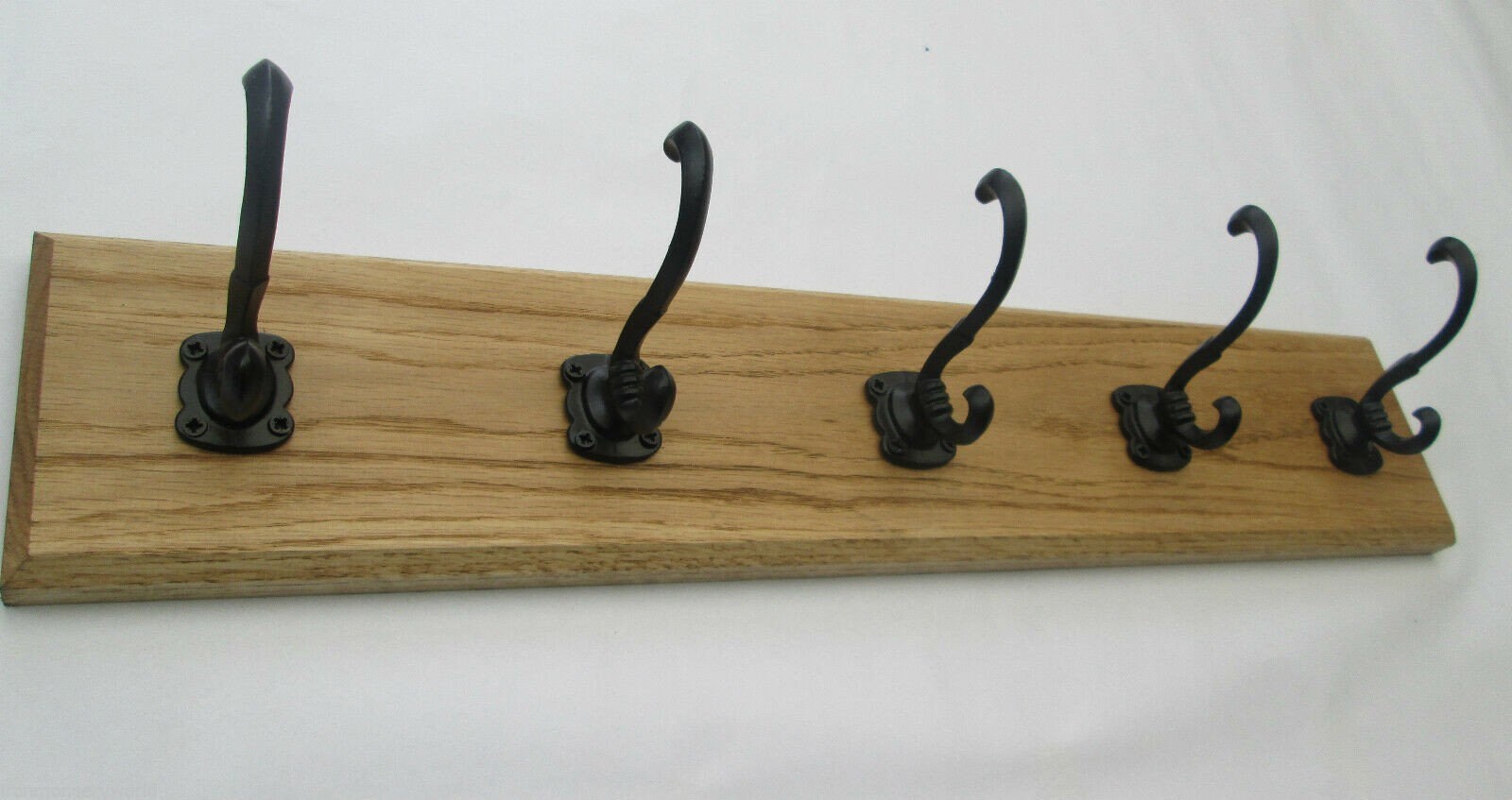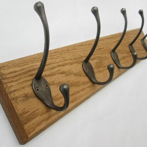 UK Handmade Solid Oak Wood Rustic Wooden Wall Mounted Hat and Coat Hook Rail Rack Hanger Coat Rail Cast iron Runswick black antique hooks