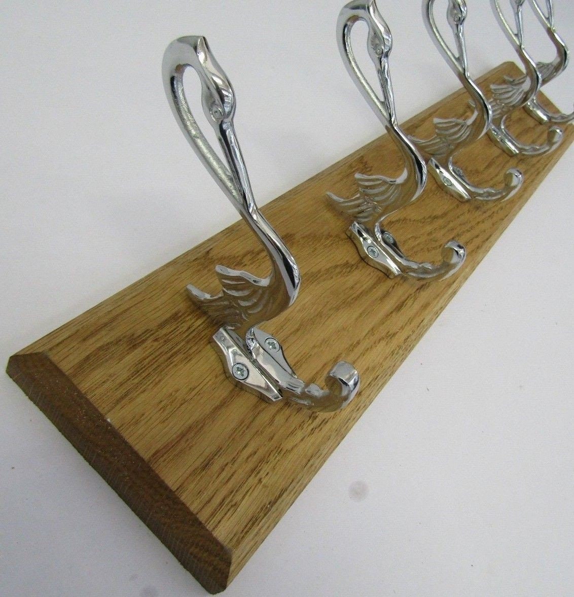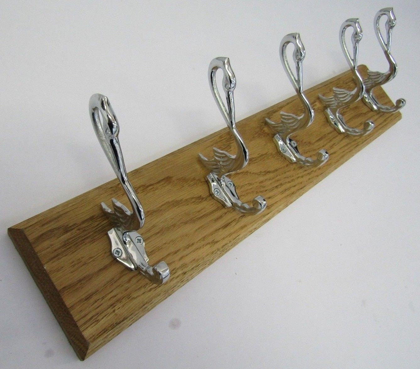UK Handmade Solid Oak Wood Rustic Wooden Wall Mounted Hat and Coat Hook Rail Rack Hanger Coat Rail Solid Brass polished chrome pelican hooks