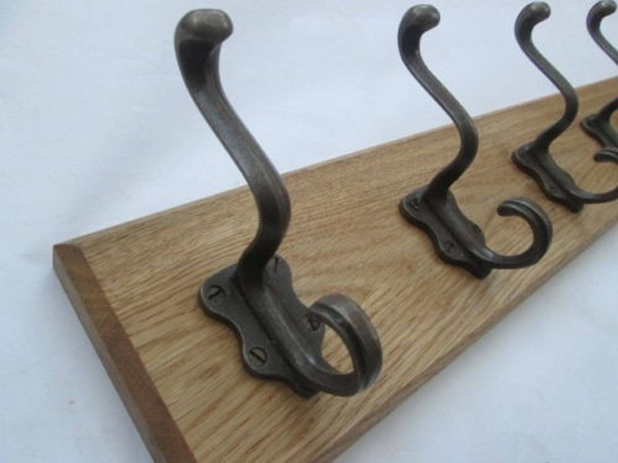 UK Handmade Solid Oak Wood Rustic Wooden Wall Mounted Hat and Coat Hook Rail Rack Hanger Coat Rail Cast iron Art Nouveau antique iron hooks
