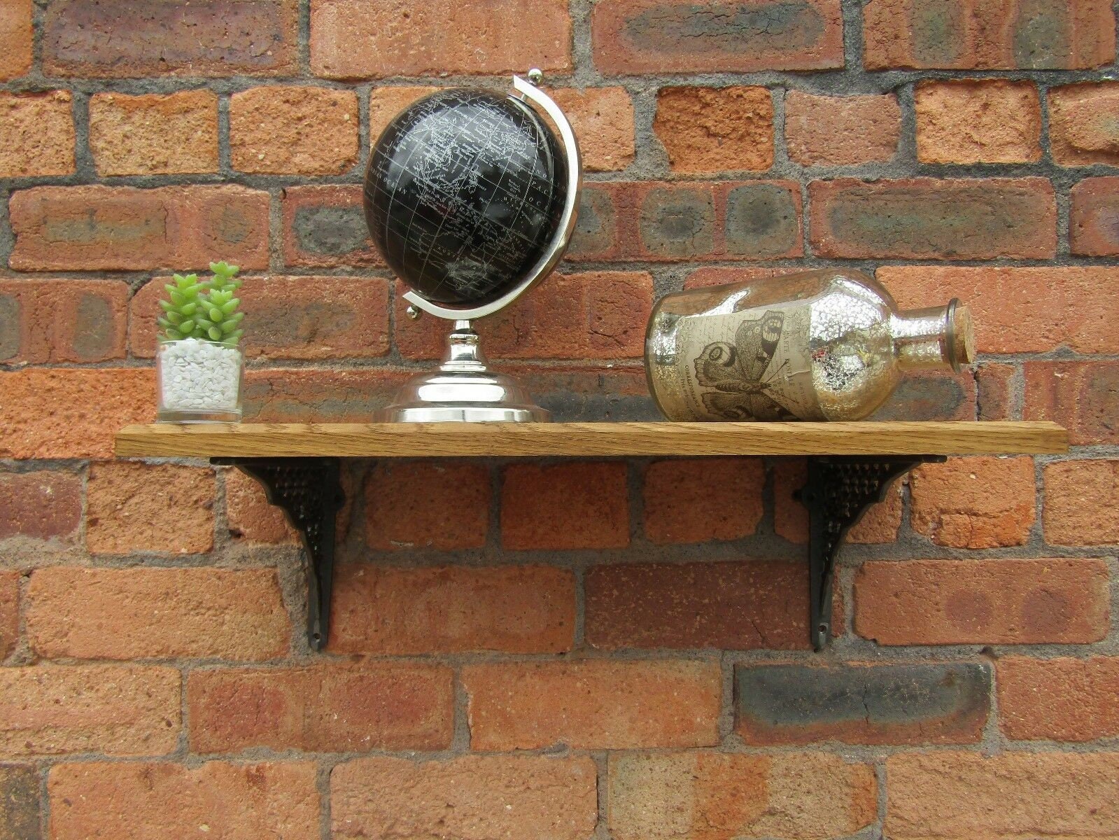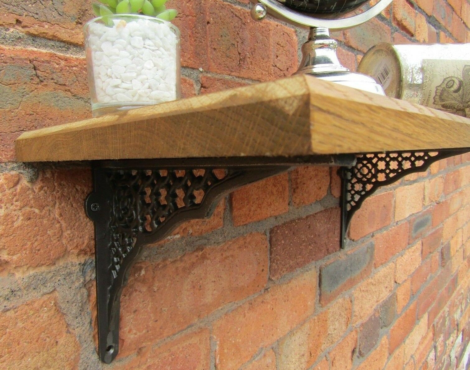 Solid Oak Wood Handmade Shelves rustic Shelf 22cm DEEP with cast iron shelf brackets 8" LATTICE antique iron