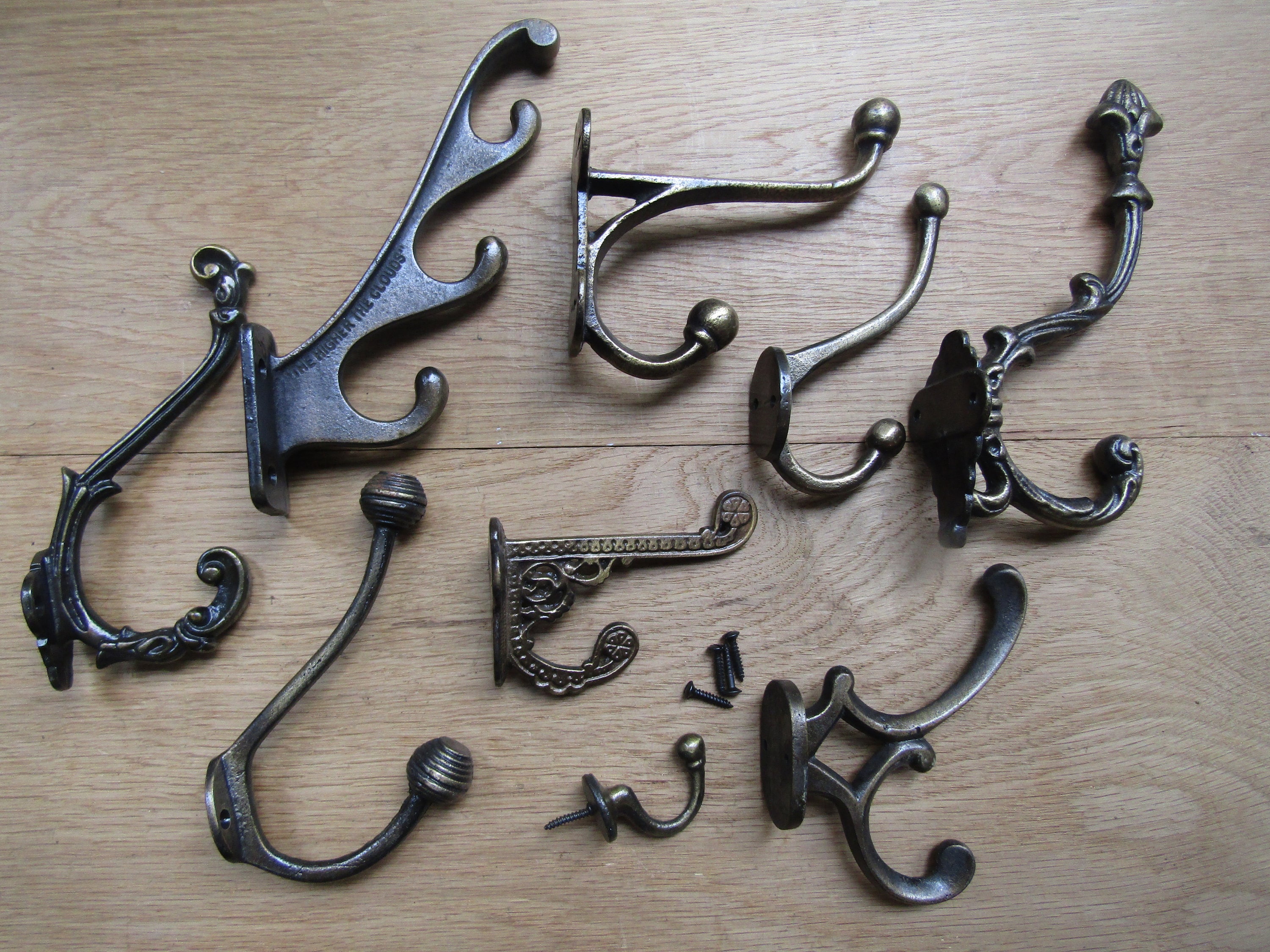 PACK of 5 Cast iron Antique brass rustic vintage old hat and coat hooks retro shabby chic industrial pegs OVER 50 DESIGNS to choose from