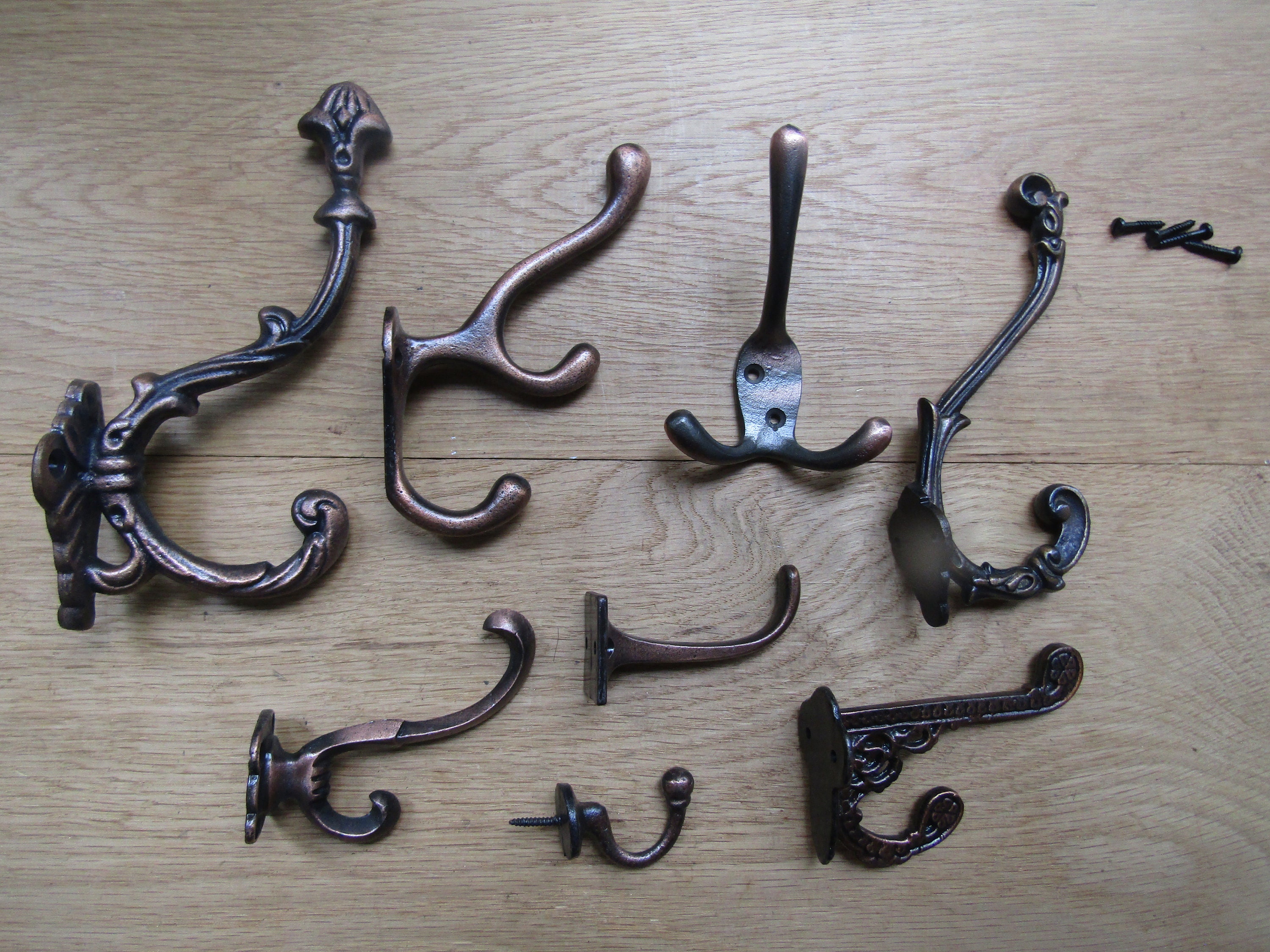 PACK of 5 Cast iron Antique copper rustic vintage old hat and coat hooks retro shabby chic industrial pegs OVER 25 DESIGNS to choose from