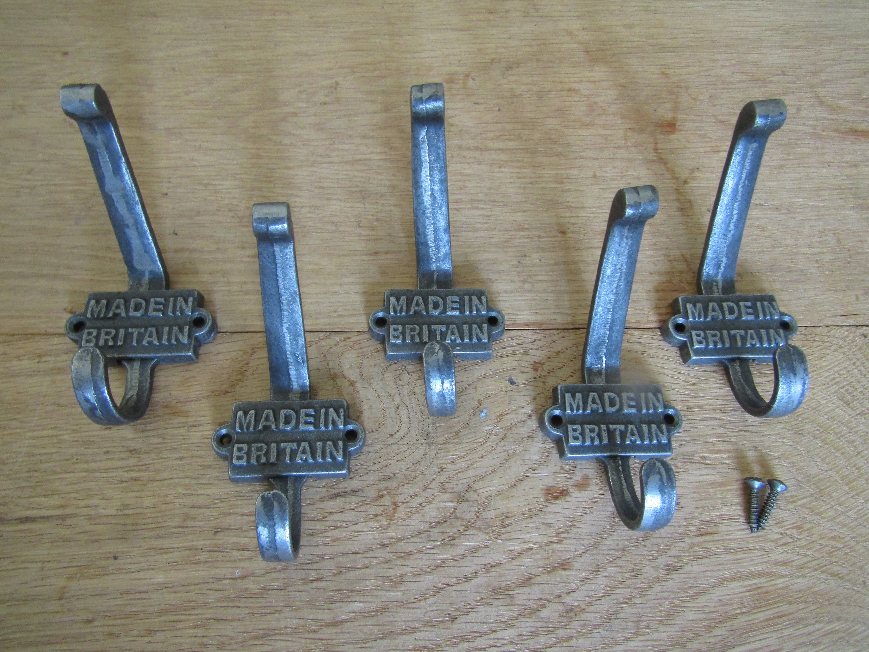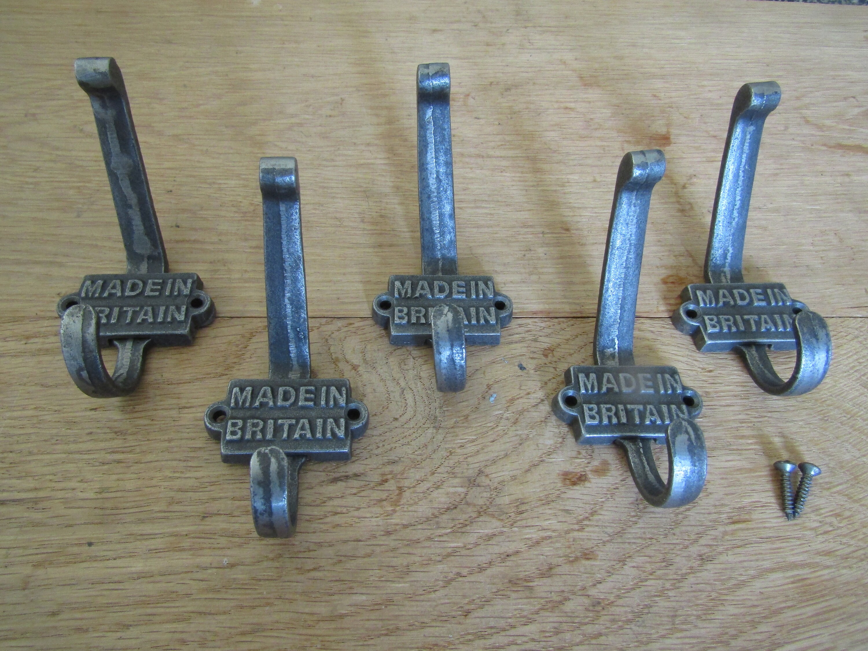 Pack of 5 MADE IN BRITAIN Cast iron Rustic hat and coat hooks vintage retro victorian old antique style railway coat hooks hanging hooks peg