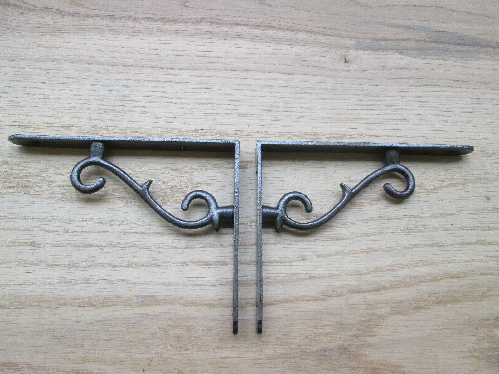 Pair of THORN cast iron rustic shelf brackets vintage retro scaffold basic scroll shelf brackets
