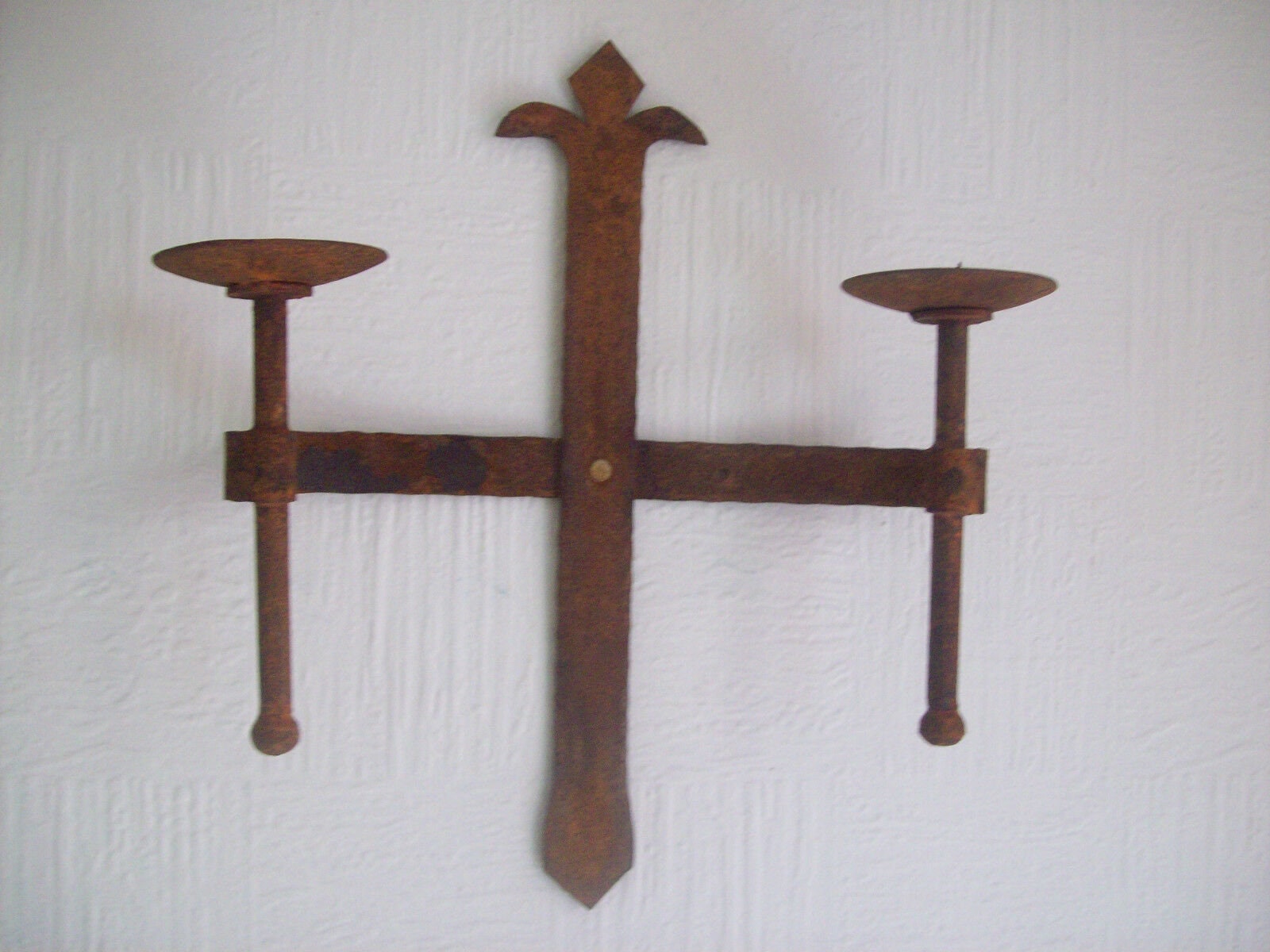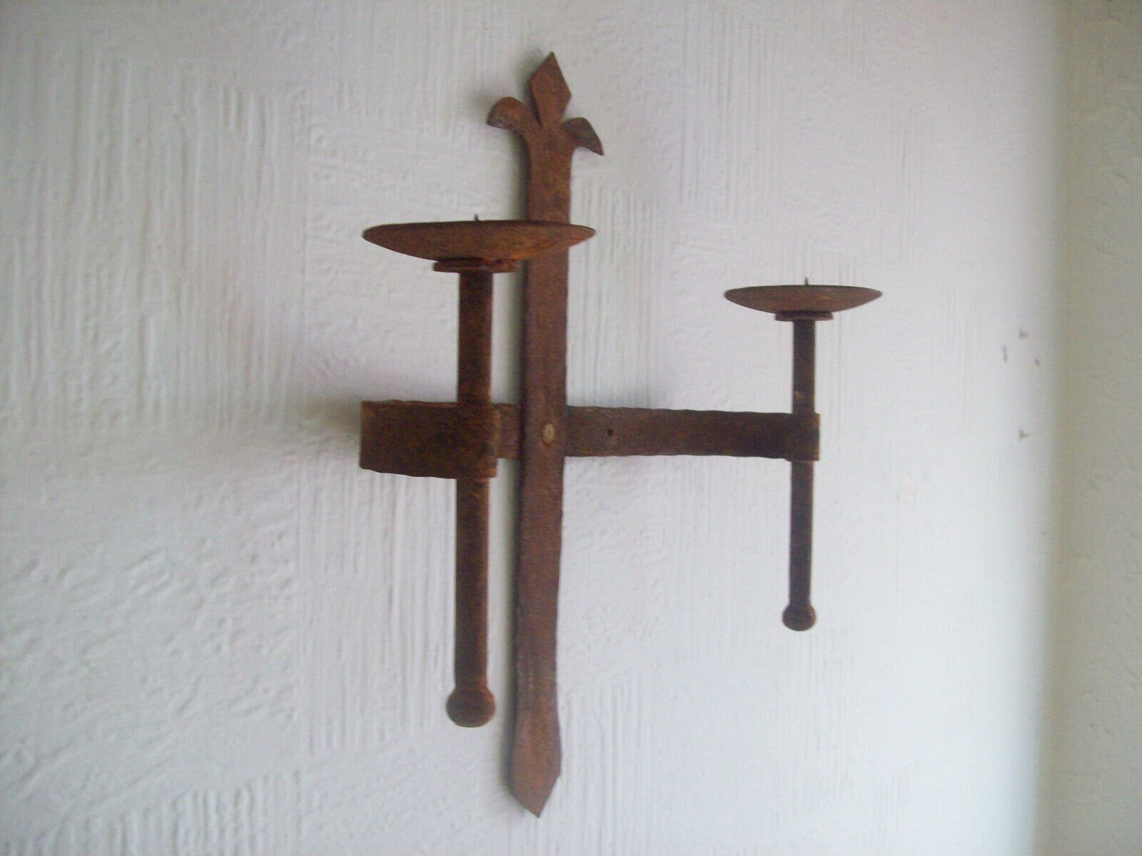 MEDIEVAL GOTHIC RUST church candle holder Hand Made Forged vintage Old Antique Rustic Candle Holder Sconce wall mounted