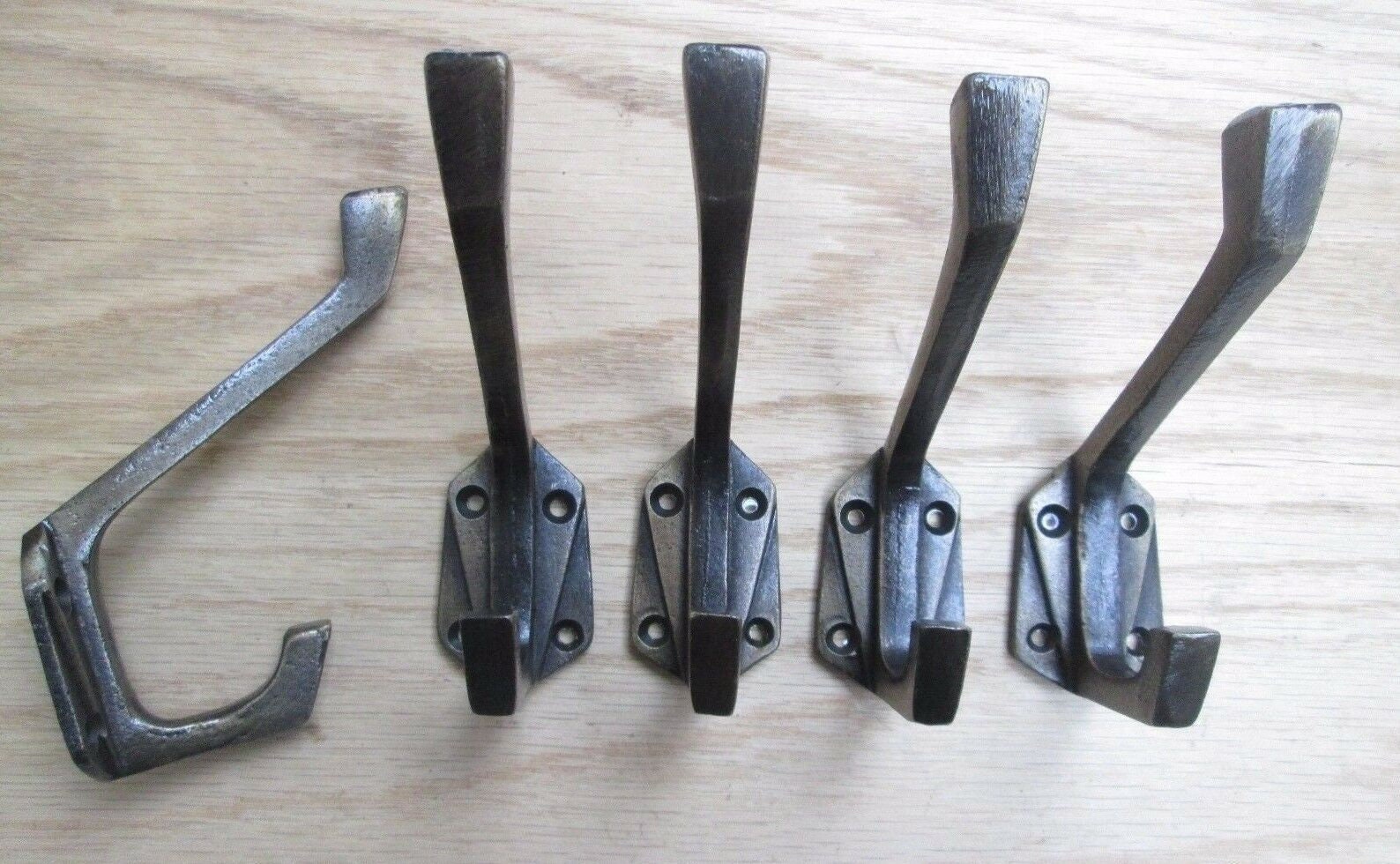 Pack Of 5 GEO METRIC Cast iron Rustic hat and coat hooks vintage retro old antique hanging hooks pegs ANTIQUE Brass